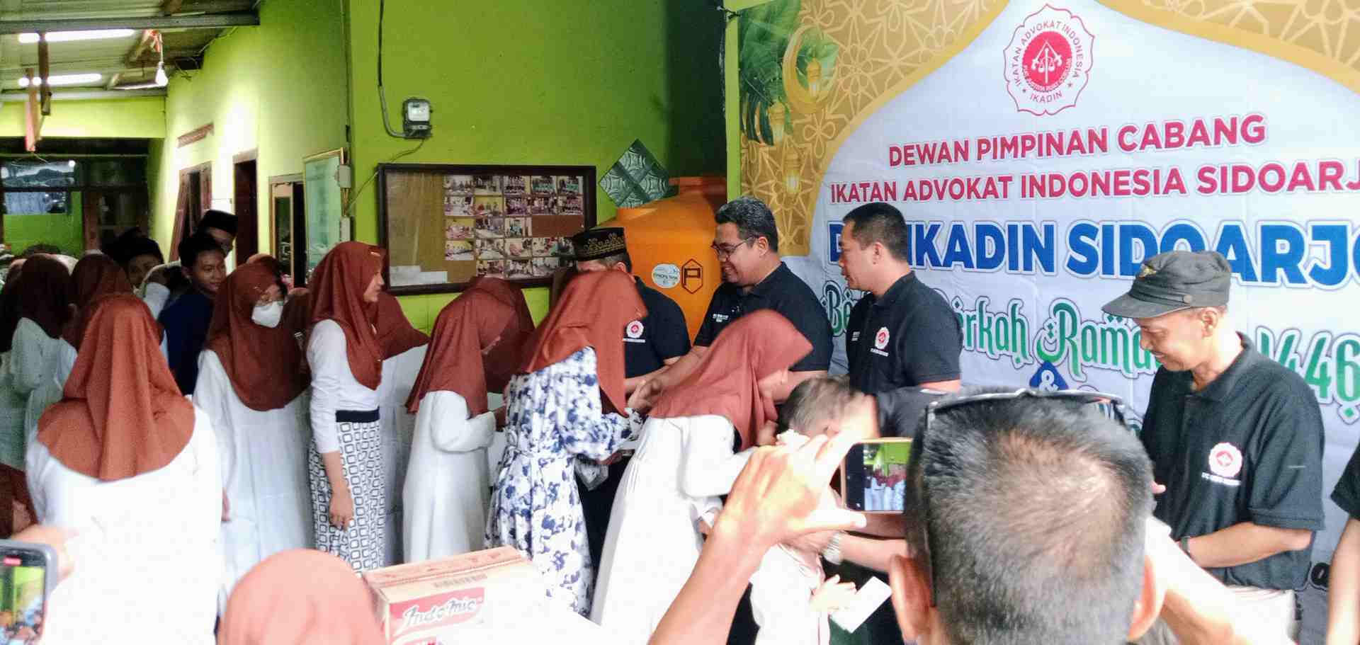 Dengan didampingi oleh para pengurus dan anggota, Ketua DPC IKADIN Sidoarjo Andry Ermawan SH memberikan santunan kepada Yayasan Yatim Piatu Amanah Bina Insani Gebang, yang berada di Dusun Gebang, Desa Gisik Cemandi, Kecamatan Sedati, Kabupaten Sidoarjo, Jumat (21/3/2025).