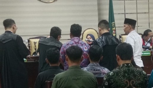Terdakwa Kades Yuliantono (baju putih) saat sidang di Pengadilan Tipikor Surabaya. Foto: ist