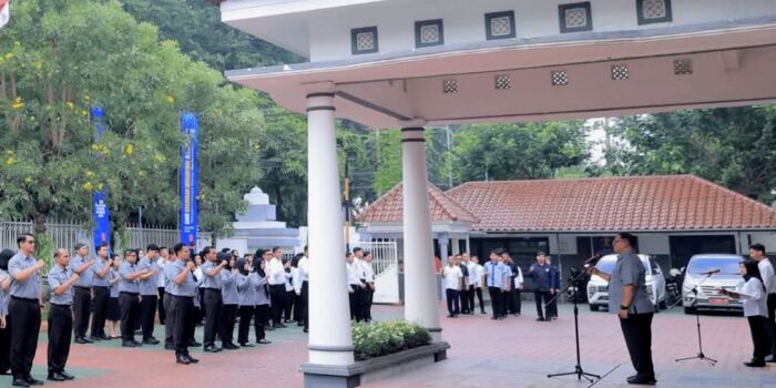 Surabaya-SUARAKAWAN.COM: Kantor Wilayah Kementerian Hukum Jawa Timur menggelar apel pagi sebagai upaya memperkuat kedisiplinan pegawai sekaligus meningkatkan kesadaran akan pentingnya menjaga kesehatan menjelang puncak musim kemarau.