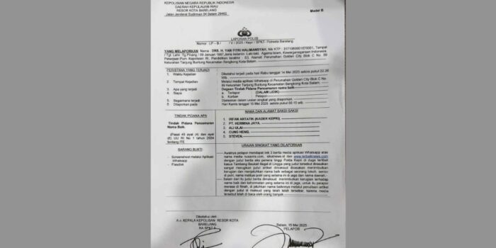 Lantaran artikel dan judul berita tersebut dianggap sangat merugikan. Terlebih lagi berita itu viral di media sosial yang notabene dibaca banyak orang. Tokoh Melayu yang bergelar Dato’ Sri Indera Pahlawan dan Dato’ Perdana Setya Buana ini merasa nama baik dan kehormatannya tercoreng, hingga akhirnya melaporkan kasus itu ke Polresta Barelang.